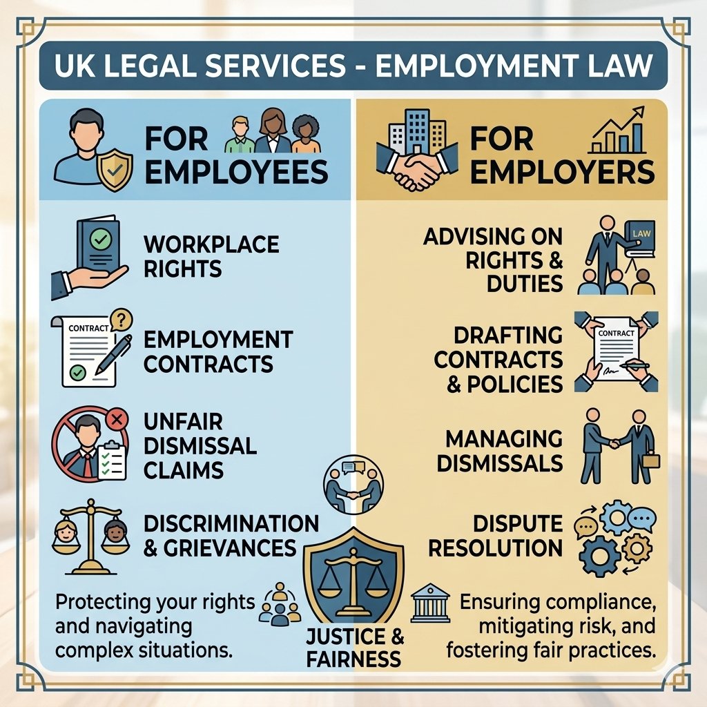 Advice for employees and employers on workplace rights, contracts, and unfair dismissal.