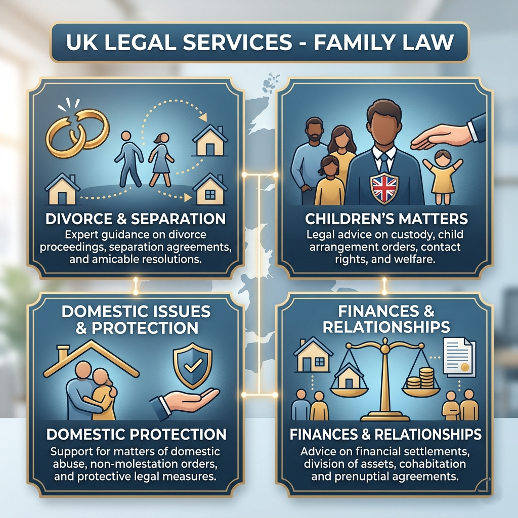 Help with divorce, separation, domestic issues, and legal matters involving relationships.